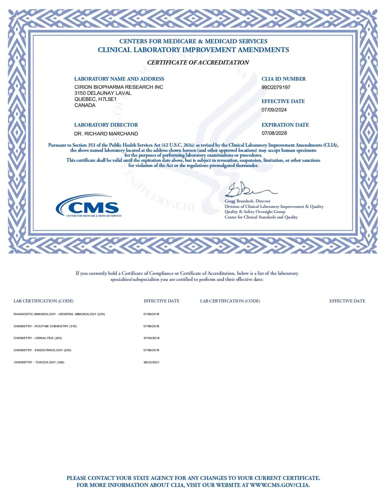 CLIA Certificate Of Accreditation 2024-206 – CIRION