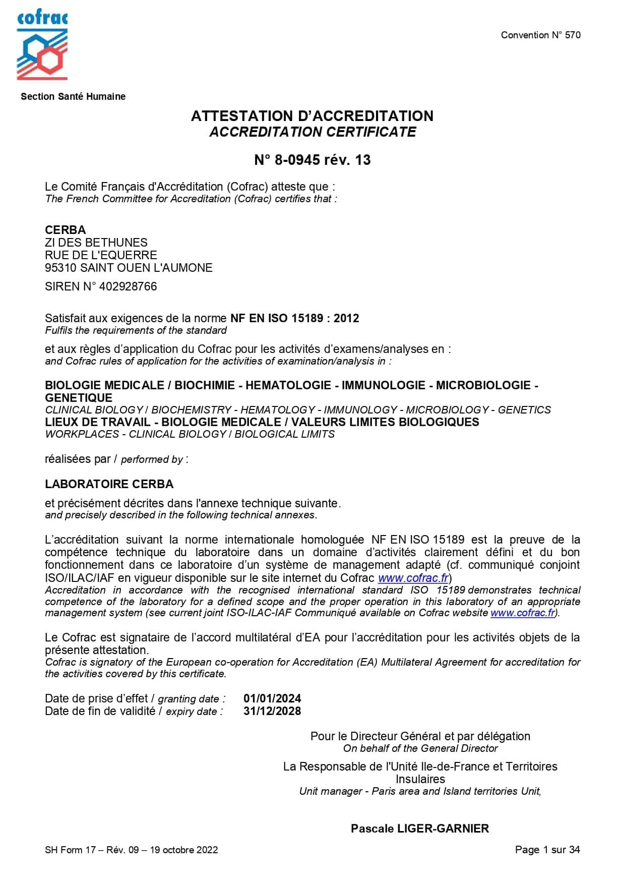 Cofrac – Accreditation Certificate