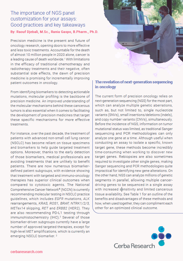 Elevate your understanding of precision oncology’s potential. Download our white paper to harness the benefits of NGS panel customization. Empower your oncology research and clinical practice with insights that will help transform your research and advance health for patients.
